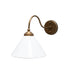 Este diseño de luminaria con soporte de muro de bronce es decorativa, estilizada, geométrica e industrial. Su iluminación es focal. Su presencia recuerda a un ave con su cuello erguido. Destaca la elegancia de la pantalla con su terminación de bronce.