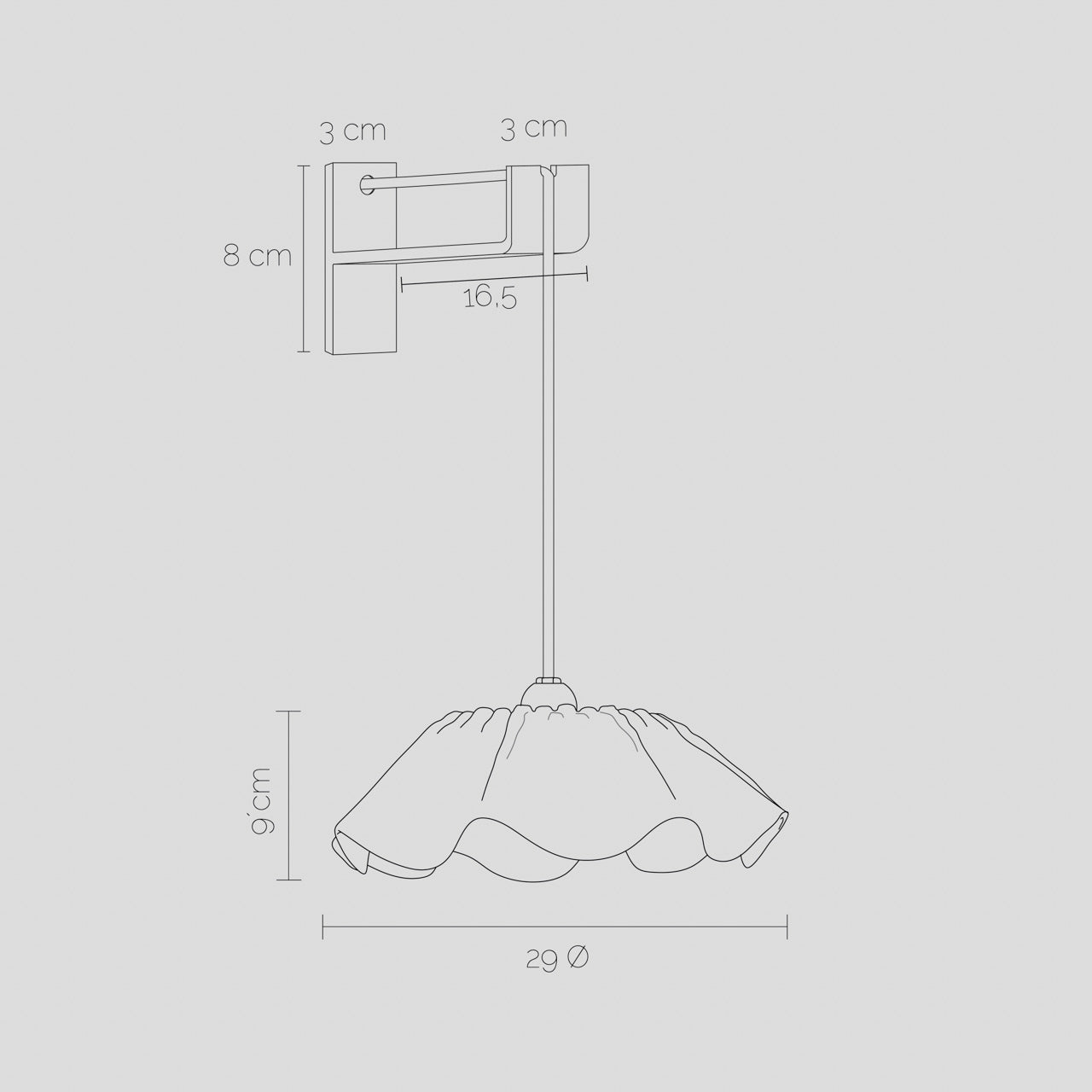 La lámpara Violacea escuadra de fierro para la pared nos evoca la flor de la violácea, de simetría radial, en forma de "campanilla" introducida en Chile desde Norteamérica. Hoy abunda en los campos silvestres y jardines chilenos.
