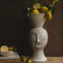 Cabeza: 27cms alto x 17cms ancho. Vaso: 13,5cms alto x 15cms diam.