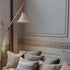 Lámpara de pie de gran formato elaborada en madera nativa de coihue. La pantalla alude a la flor nacional del copihue y esta hecha 100% a mano en papel de arroz. El soquete es de color cobre agregando a lámpara un look más contemporáneo. Es una pantalla traslúcida que además de ser muy decorativa y liviana, aporta mucha luz al espacio. La base de madera de coihue es un diseño simple y funcional, la altura es ajustable así se puede dirigir la luz de manera más precisa. Esta es un diseño liviano y muy versátil en su montaje; queda bien en una casa de playa, de campo o un espacio de cuidad.