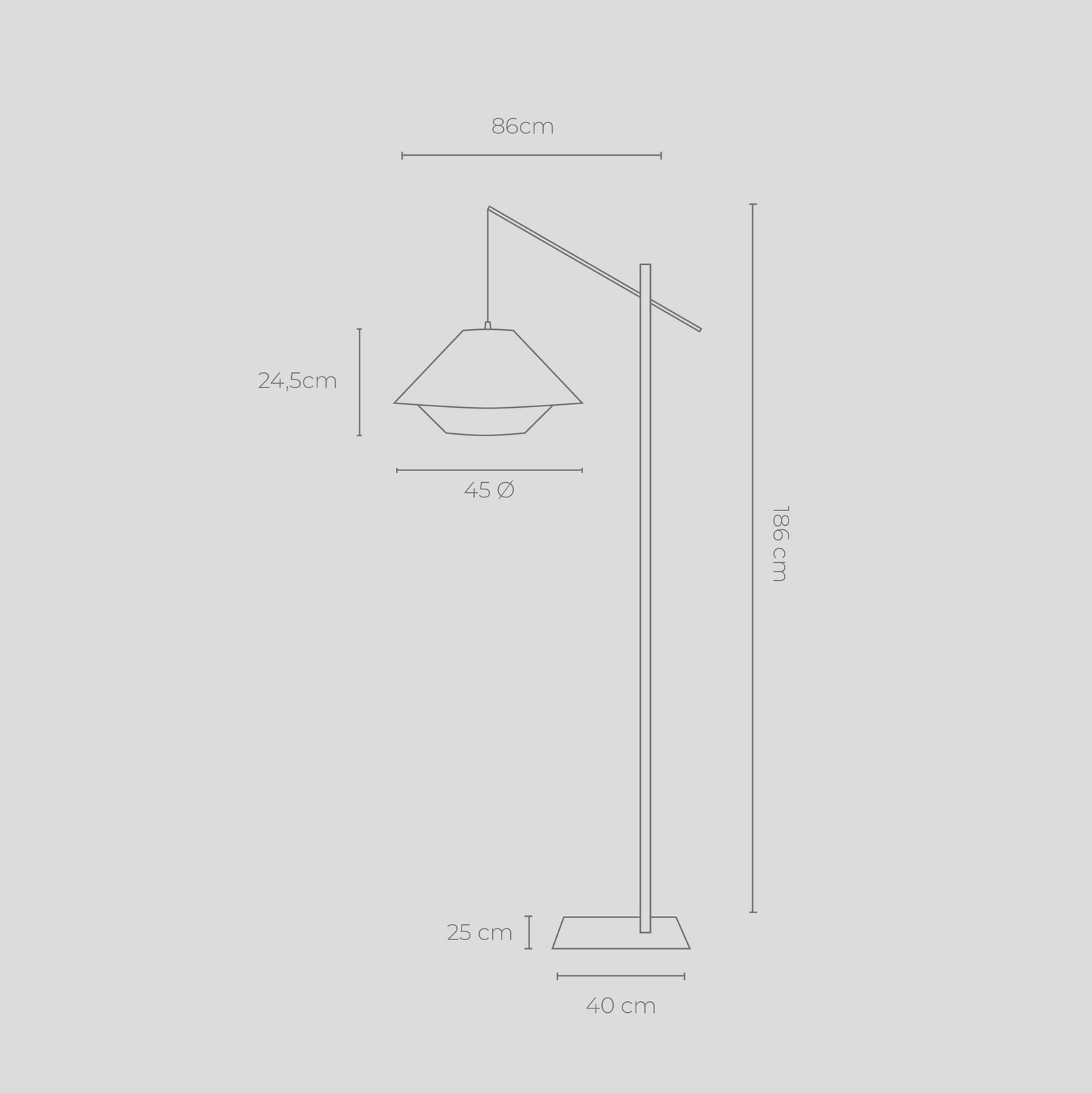 Posee un diseño lineal y geométrico elaborado en pergamino (cuero natural curtido). Debido a que el pergamino es translúcido, esta luminaria puede iluminar muy bien los espacios de manera general con una luz cálida color ámbar. La luz permea el pergamino logrando un ambiente acogedor.